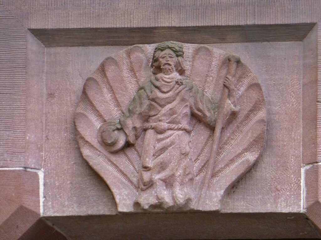 Médaillon de la fin du XX° avec un saint Jacques et ses attributs dans une coquille