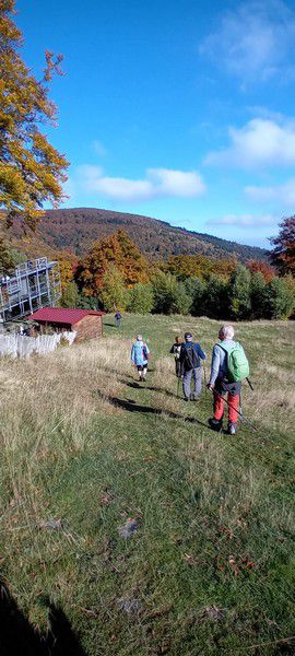 Un départ à 9H30 devant la ferme-auberge de la Glashutte en direction du Firstacker dans un rythme tranquille –en montée- a permis à 19 participants (et 5 toutous) de s’échauffer en douceur ; surtout qu’il y avait quelques « nouveaux genoux » mis à l’épreuve… !