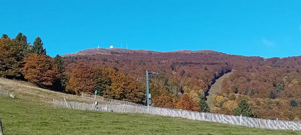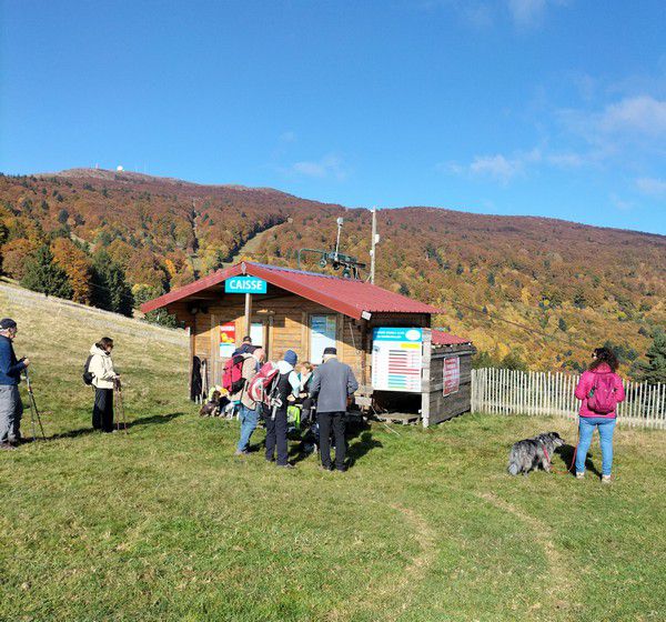 Arrêt technique, puis continuation, toujours en montée vers la ferme du Grand Ballon. A cette altitude, la vue était magnifique et la nature colorée et parée de couleurs automnales. Splendide ! Etant donné la présence de nuages bas, il était impossible de voir la vue sur les Alpes, dommage.