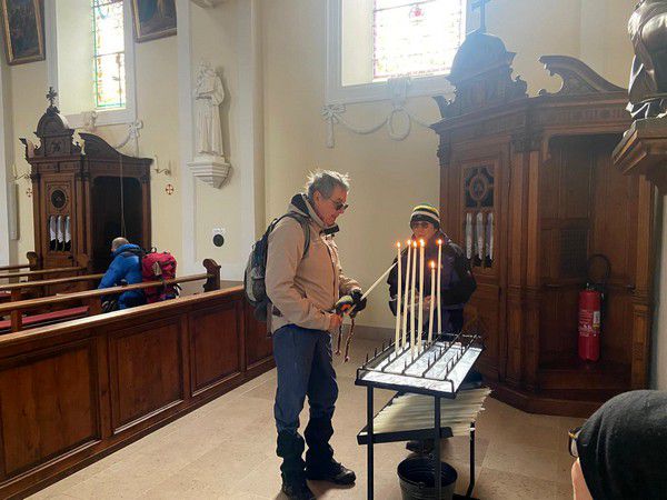 Quelques personnes du groupe, non membres, ont découvert l’ambiance jacquaire… La tablée a entamé le chant des pèlerins ULTREIA. Pour une fois, il me semblait qu’il n’y avait pas trop de fausses notes… allez savoir pourquoi ?