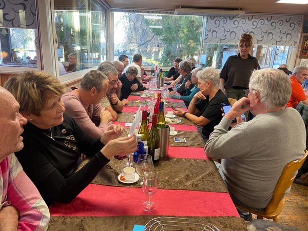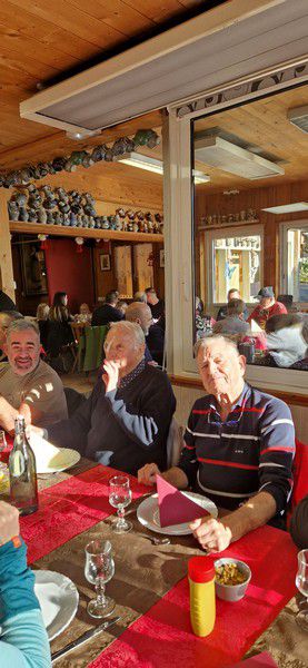 Nous sommes arrivés à midi au restaurant. Nous étions 19 autour d’une table conviviale, joyeuse et animée. Le repas était excellent, bien arrosé (et à volonté) !