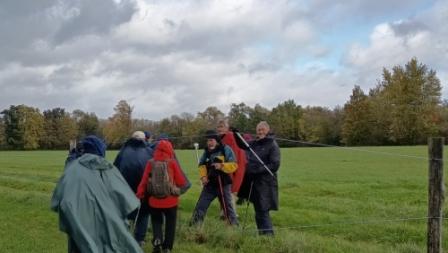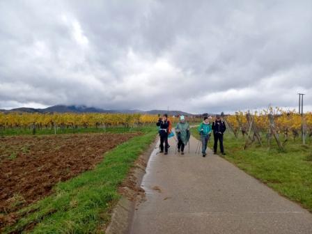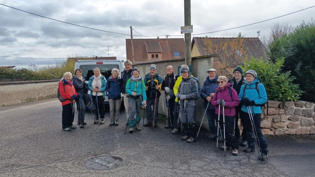 c’est une joyeuse troupe de 26 pèlerins (ou aspirants pèlerins…) qui s’est lancée dans la forêt qui longe la rive allemande du Rhin. Merci à Jean-Louis d’avoir si vite accepté la casquette d’accompagnateur !