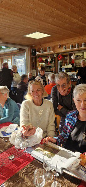 Nous sommes arrivés à midi au restaurant. Nous étions 19 autour d’une table conviviale, joyeuse et animée. Le repas était excellent, bien arrosé (et à volonté) !