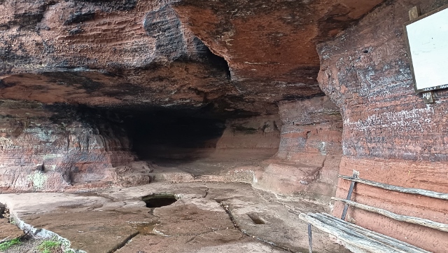 Toujours est-il que l’endroit est mystérieux : aucune trace écrite n’a pu expliquer le rôle de ce cercle ou bassin, et donc les légendes vont bon train : des fées, ou des sorcières se réunissaient-elles là, pour écouter la « maîtresse » ou pour s’envoler ensemble vers leur lieu favori, le Bastberg, un peu plus à l’Ouest ? Loin de nous envoler, nous, nous descendrons par un escalier à la grotte qui se trouve 11 mètres en-dessous de ce cercle étrange. Ce lieu humide et sombre a dû être habité depuis le néolithique, des ermites s’y sont succédé, des cultes ont dû y être célébrés et bien sûr les légendes y ont fait vivre fées et sorcières !